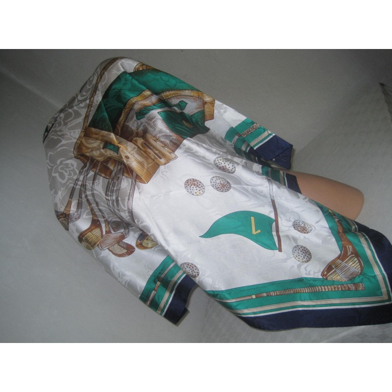 zelenomdrobílá barevnost 100%silk 87x88 jako nový golfové téma/hole aj/
